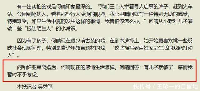 事实上,面对这个问题,何晴曾回应过,她说她现在有了儿子,暂时不考虑再婚。