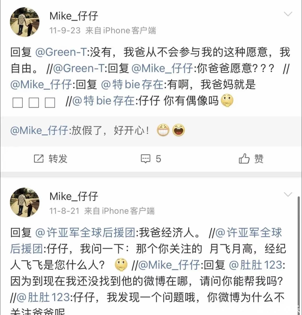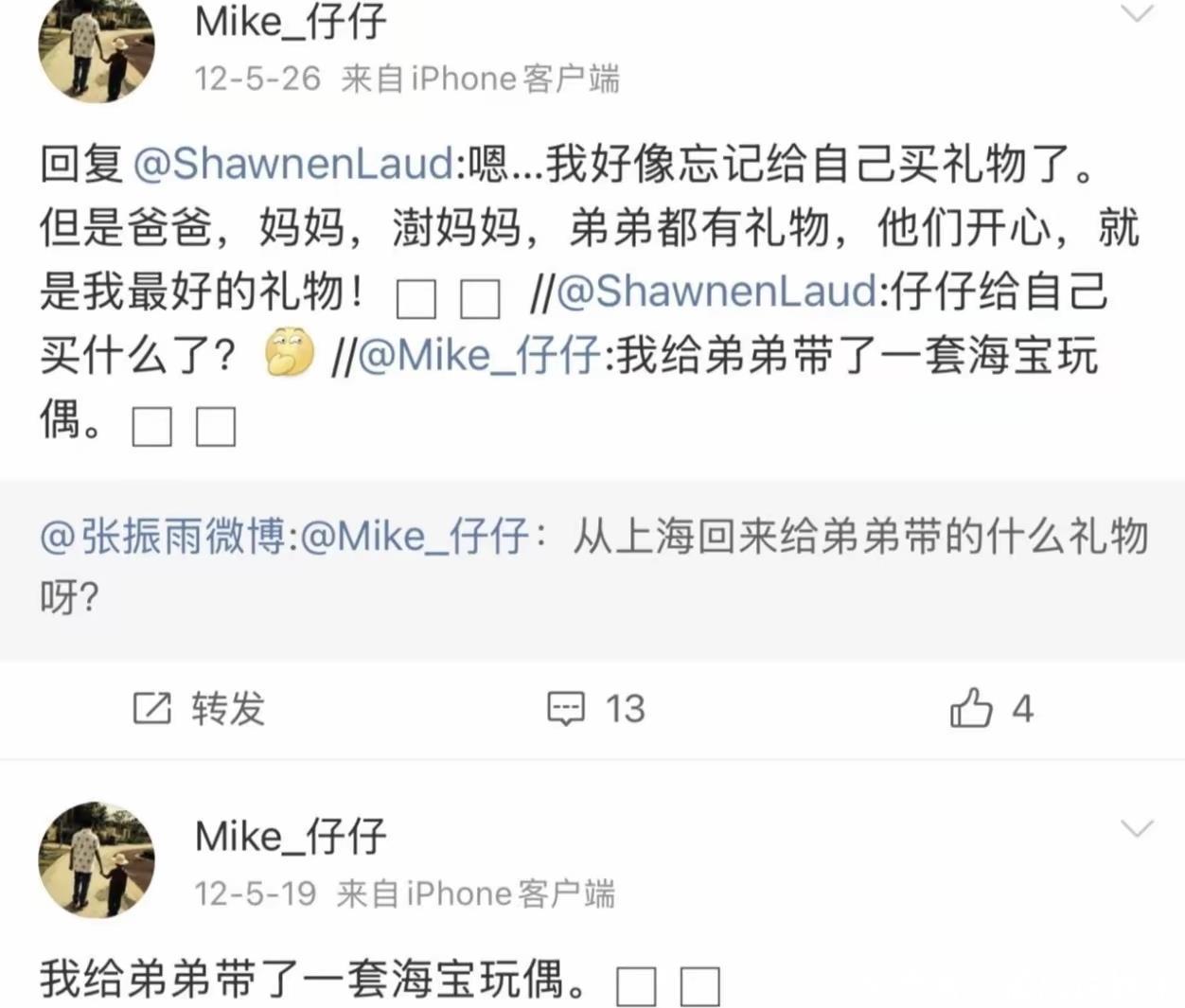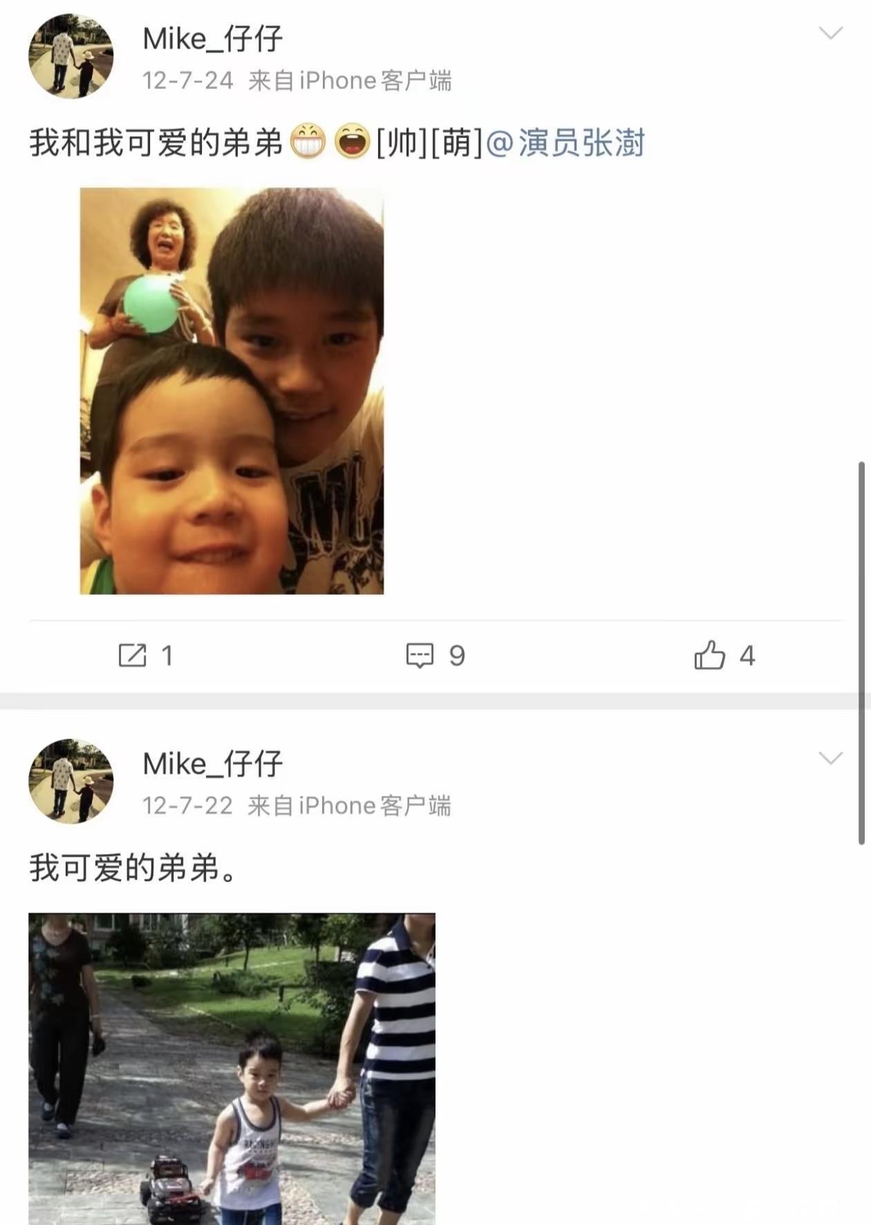 孩子从小就很懂事。初二时特意让粉丝多陪陪妈妈,怕她寂寞。弟弟是爸爸和张澍后来生的,他还经常晒弟弟的照片。