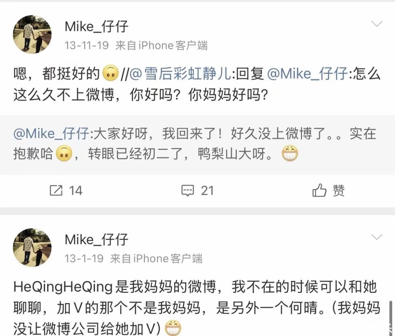 去年有新闻说何晴去世,他转发纪念文字但删掉了好多旧微博。现在他自己也踏入演艺圈,偶尔发生活照都是独自旅行或者工作场景。
