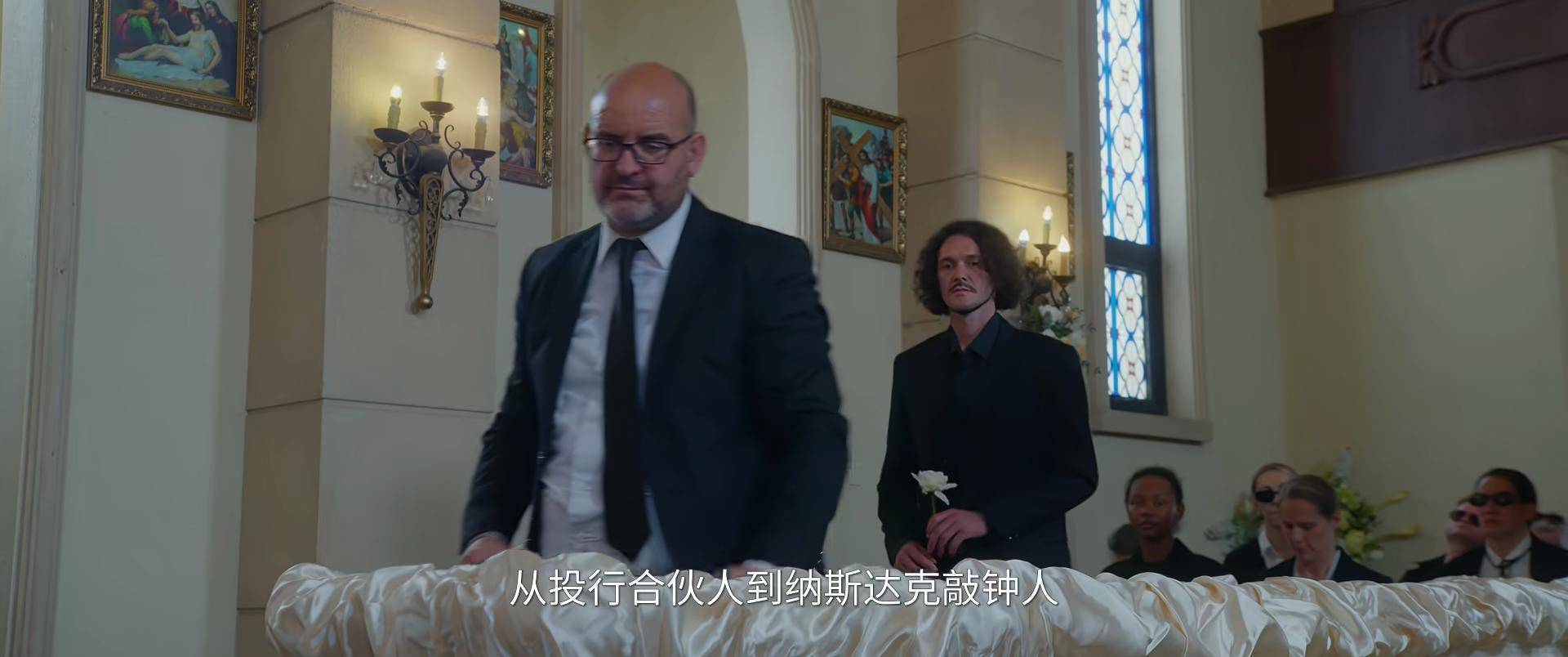 原来这是一场预制葬礼,霸总马丁还亲临现场彩排,难怪现场悲伤氛围一扫而光秒变会议室。