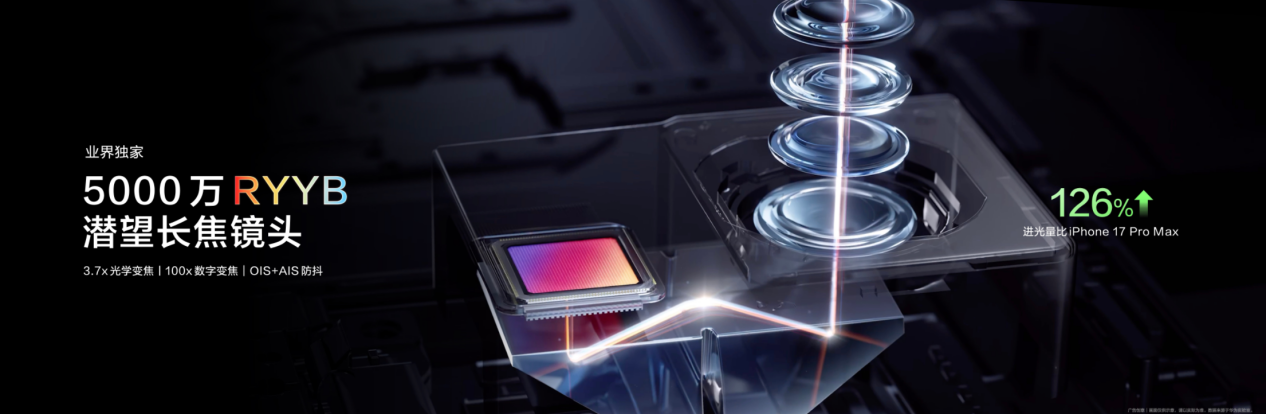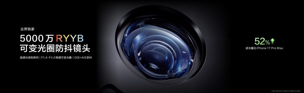 而红枫主摄凭借RYYB传感器,相较传统RGGB提升40%的进光效率,配合f/1.4–f/4.0十档可变光圈,既能快速收小光圈压制高光,保留偶像演出服上的珠片反光与刺绣纹理,又能在暗部开大光圈提升进光量,确保人脸五官清晰可见。