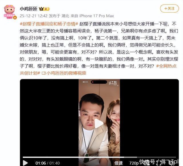 再看这次直播,杨子一边说“没搞上”,一边又夸赵樱子“比我好看”“有夫妻相”。 这话里话外的暧昧,连网友都看明白了:“这哪是澄清,分明是变相撒糖!”