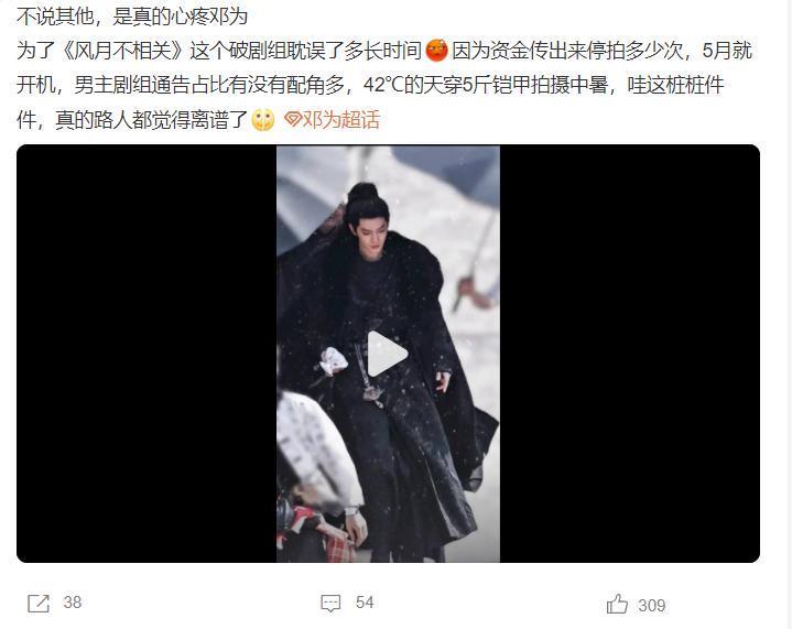 这部剧播出后,邓为的热度快速上升,然后他开始接男主剧,先拍摄《仙台有树》,然后又进组《风月不相关》,但让大家没想到的是,《风月不相关》竟然停拍了,这让很多网友都感到可惜,要知道《风月不相关》刚开拍就自带关注度。