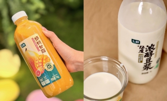 七鲜旗下多款自有品牌乳品饮料也凭借出色品质与口感成为新店开业“隐藏主角”。其中,七鲜低GI浓醇黄豆豆浆精选东北非转基因大豆,以低嘌呤工艺和低升糖认证满足健康饮食需求;七鲜杨枝甘露则复刻经典港式风味,芒果的香甜与西柚的微苦在顺滑椰奶中交织,层次丰富而不腻;还有多口味果味气泡酒,灌入整颗真实果肉,气泡绵密、入口爽冽,山楂、荔枝、青金桔等风味为冬日增添一抹微醺乐趣。