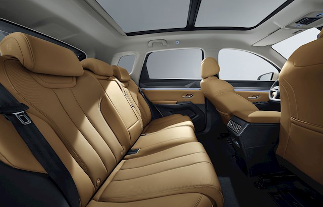 车辆长宽高为4735*1860*1690mm,轴距2712mm,使用大五座布局,后排座椅椅背支持4:6按比例放倒,全部放倒与后备厢齐平,秒变大床房。